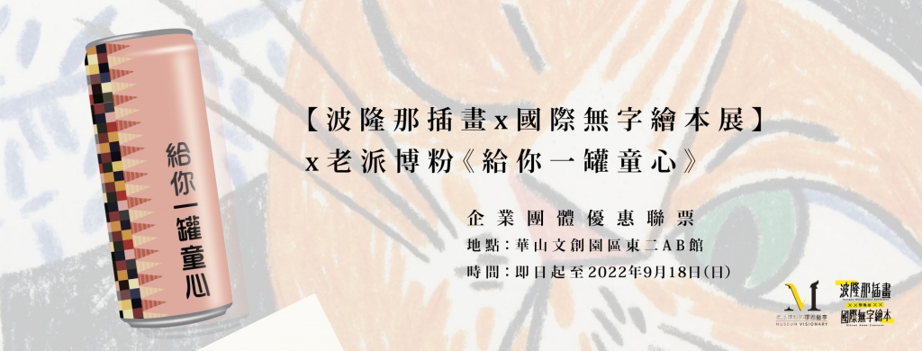 炎炎夏日,想造訪「波隆那插畫與國際無字繪本雙聯展」,並且來罐清涼解渴的童心飲料嗎?趕快揪親朋好友一起參加《給你一罐童心》的揪團活動,或是購買企業團體優惠聯票吧~