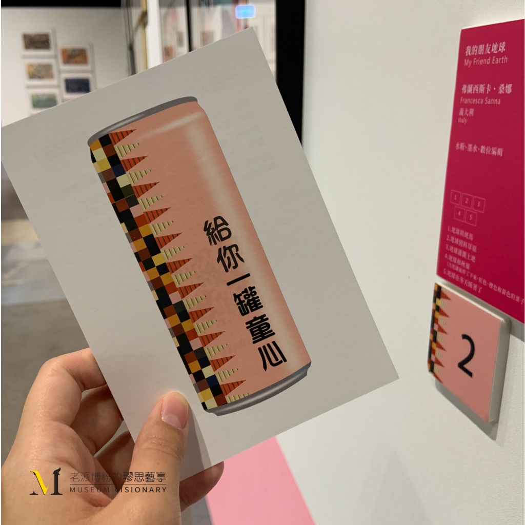 更加深刻,是因為《給你一罐童心》為觀眾規劃了一條能深入觀察插畫,並且看懂插畫背後寓意與議題的參觀路線。雖然遊戲中的題目大多都是看似簡單的選擇題,但是這些問題的設計背後都非常富有巧思,有的需要觀眾認真觀察畫作細節與畫中關鍵物品,有的需要觀眾發揮天馬行空的想像力,還有的則需要觀眾將畫面中的元素或主題與個人生命經驗連結。另外,飲料罐精靈的語音導覽內容不僅平易近人,還能讓你收穫閱讀展板文字與租借語音導覽所無法獲得的知識與觀點。
