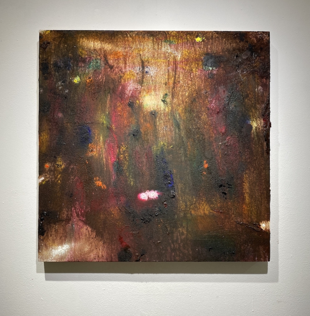 最近一場親子工作坊結合藝術和社會情緒學習,除了探究各種情緒、也引導大家觀察眼前的繪畫引起了什麼感受。下圖深色畫中一點粉紅的這一張,讓不少孩子馬上給出倒讚,紛紛表示感到亂糟糟、聯想到暗暗的森林,甚至感到有點害怕。同時,也有孩子形容像宇宙大爆炸一樣絢麗,讓他開心極了。