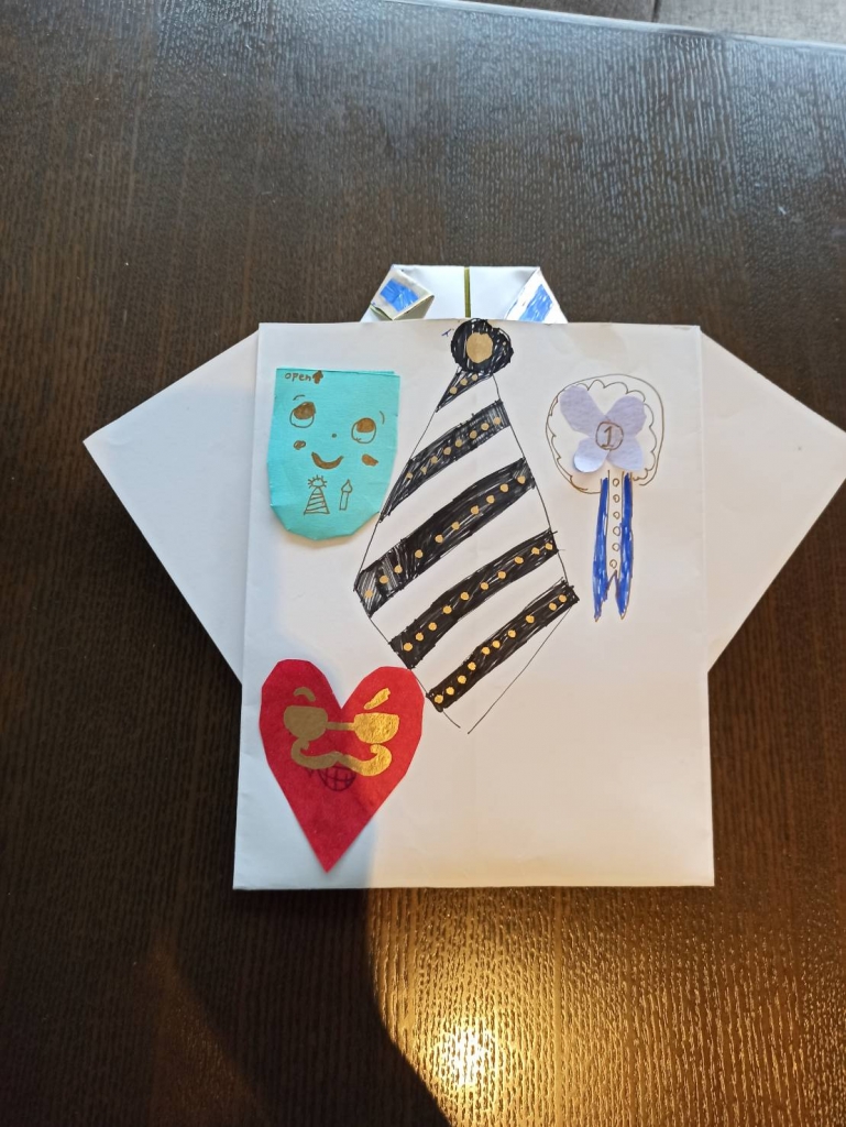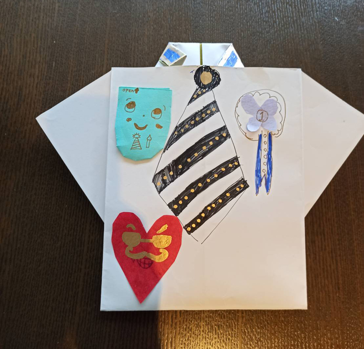 7. 進行裝飾,或以書中書概念多做幾層,可以多位家人一起寫下給父親的祝福喔!如圖10-11為小四女生的作品。