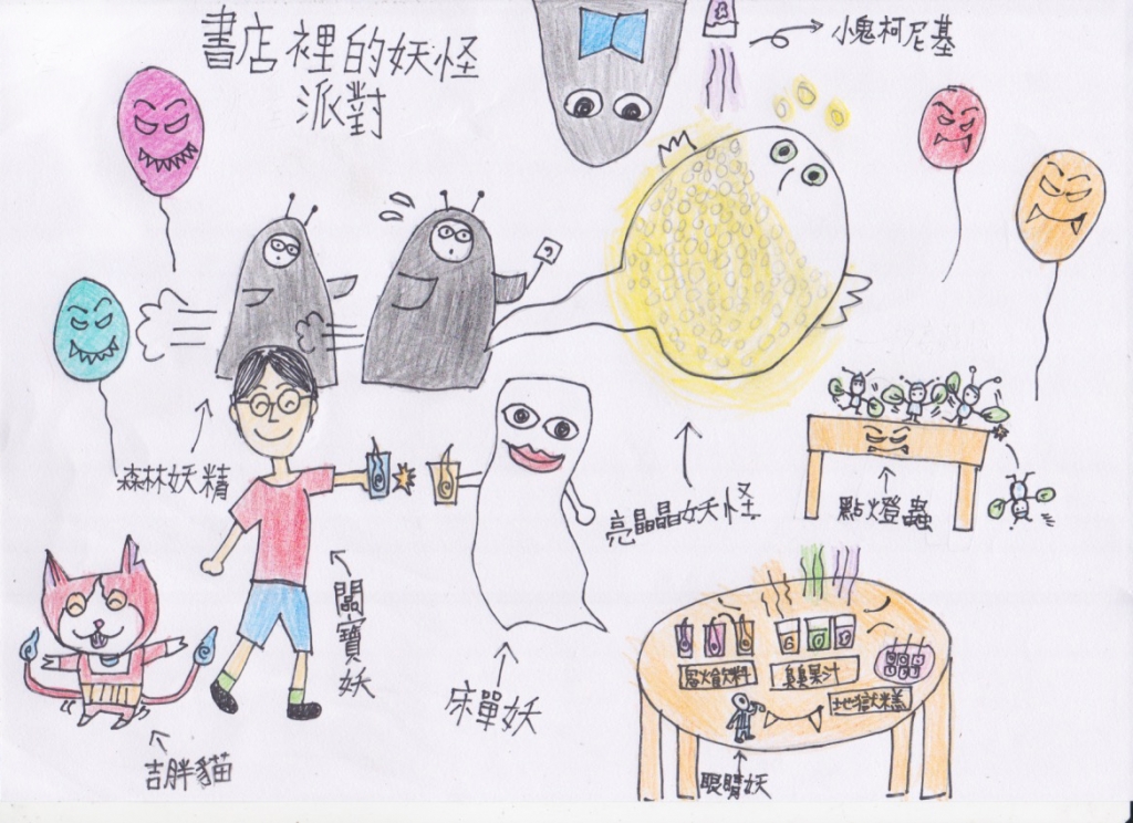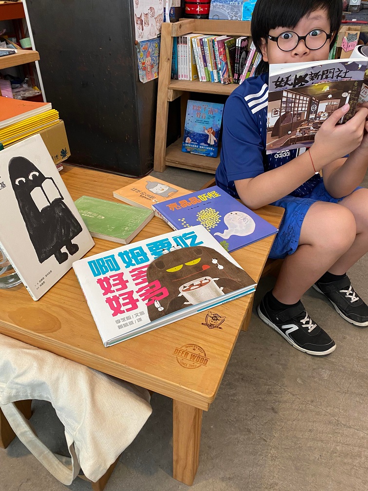 其實,我在書店說的第一個鬼故事是《亮晶晶妖怪》,我還很小的時候就很喜歡聽媽媽說這個故事,妖怪冬冬是個膽小鬼,夏天的夜晚在河邊散步,還被螢火蟲嚇得發抖大哭,小時候的我讀了這個鬼故事,發現妖怪其實也會膽小害怕,也需要學習勇敢,就比較不怕鬼怪了,書店有一年的萬聖節我們說《亮晶晶妖怪》給大家聽,和大家一起討論『害怕』,找到克服害怕的方法,不論是鬼月或是萬聖節,都不一定要故意裝神弄鬼來嚇自己和別人,讀這樣溫暖可愛的鬼故事也非常有趣啊!