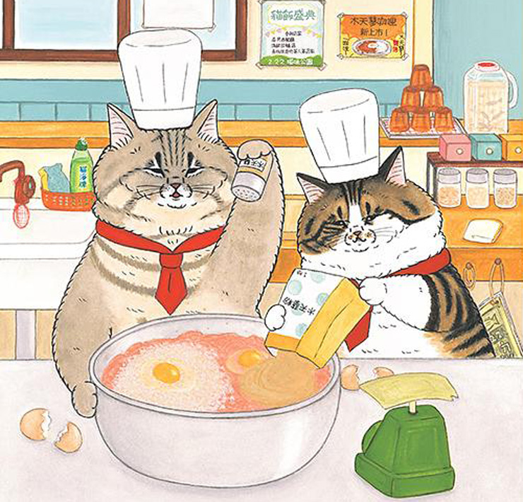 不論是拉麵或西餐漢堡排,主廚們各有絕招,有獨特的湯頭、香料,所以餐廳總是客朋滿座,只是一下湯太燙、一下漢堡排被咬一口,在用餐過程裡,都有出奇不意的狀況發生,可是,那又有什麼關係呢?!在貓咪餐廳裡,所有的美味都不容被阻擋。用心刨出來的柴魚片,搭配油花叉燒,還有溏心蛋,端出來的拉麵就在讀者眼前,邀我們入座;而在鍋子上滋滋作響的漢堡排,有黃澄澄的荷包蛋相襯,香味已然飄入我們的腦海。