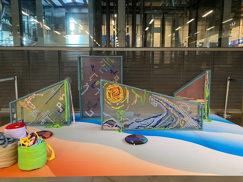 編織海洋活動則是館方與織品藝術家鍾瓊儀合作,放置可自由進行編織創作的織框,並打造舒適的座位空間,讓喜歡體驗手作活動的民眾能夠自在的創作。臺史博表示,編織海洋區每天都有令人驚喜的成果,有民眾花費一下午手作美麗的太陽、還出現維妙維肖的恐龍,成功活化展場角落!民眾的創意讓館方讚嘆,也對後續發展更多具實驗概念的活動感到有信心。而線上一開放報名即秒殺的刺繡工作坊,將由鍾瓊儀帶領學員以刺繡創作圖像,並將完成的作品固定至編織海洋的藝術作品上。