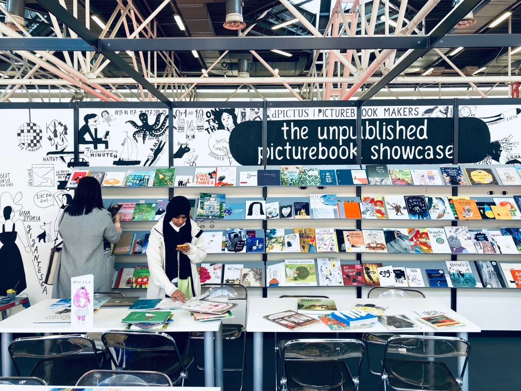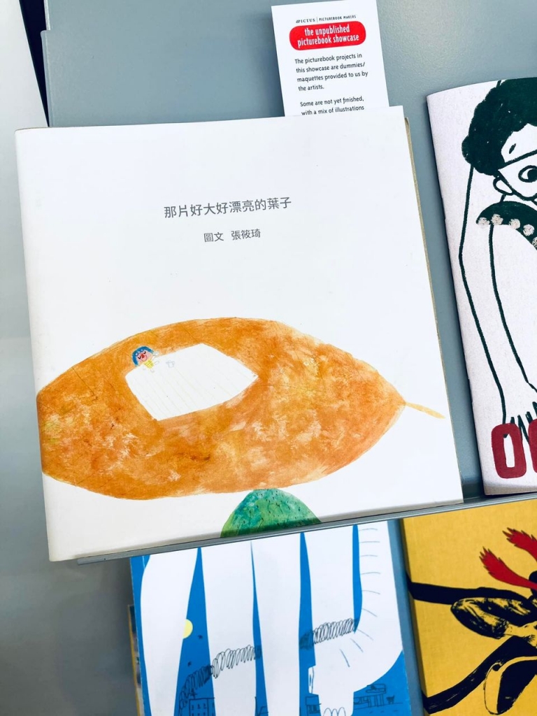 二〇一九年秋天,一到東京,就收到了一個努力促進繪本編輯與繪本經紀人發現新銳創作者及其未出版的繪本作品並進行交流的平台dPICTUS寄來的消息。《那片好大好漂亮的葉子》幸運的被選入了「The Unpublished Picturebook Showcase 1」裡,有機會可以跟著好多帶著實驗的心意完成的未出版繪本一起在那一年的法蘭克福書展裡展出。