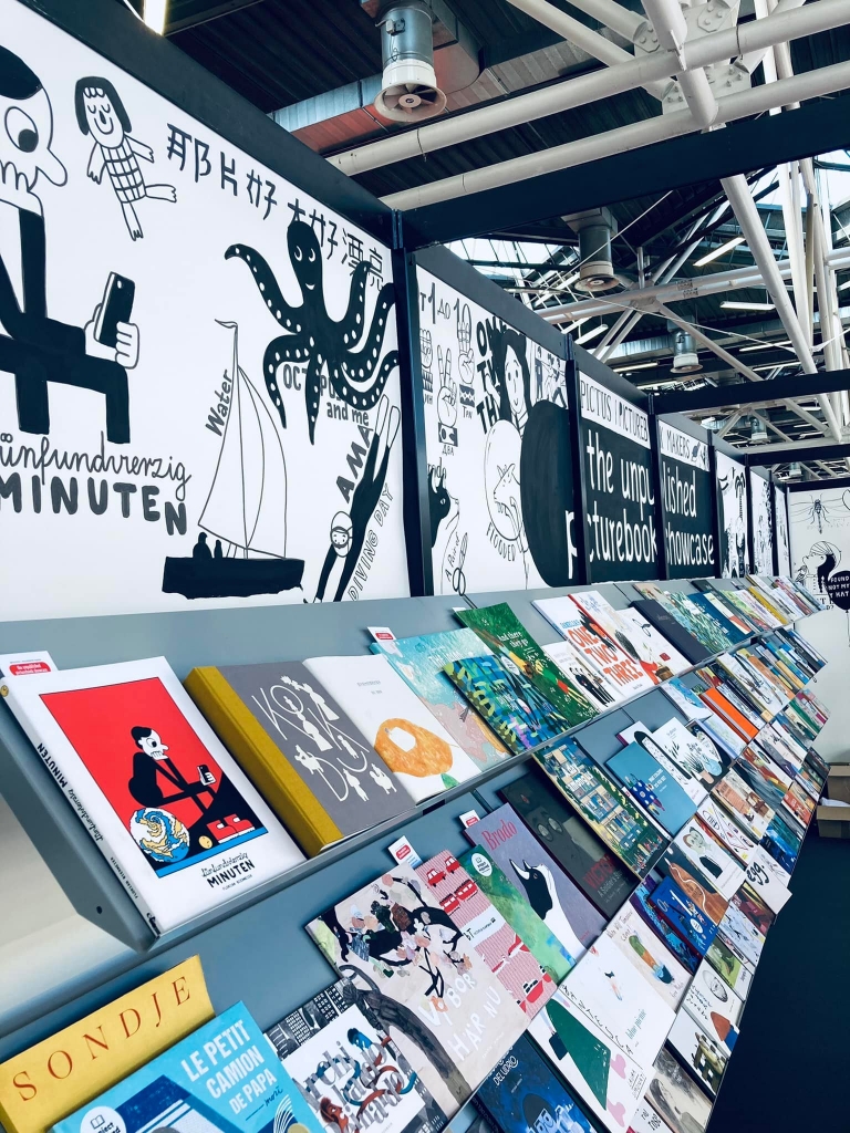 還好後來打聽到台灣一間出版社的編輯會去參加書展,不認識對方仍冒昧的請對方幫忙替《那片好大好漂亮的葉子》在法蘭克福書展裡的樣子作了記錄。也是因為有過這個經驗,這次幸運的能夠親自參觀波隆那國際兒童書展,才會在一看到熟悉的作品及圖畫的時候,趕忙拍照記錄,再分享給沒有同行的創作者。因為我記得當時的自己多麼希望能夠透過任何形式看見自己的作品在世界交匯的地方。儘管還是雞婆了,好高興這次可以換成我替自己和其他創作者的作品拍照記錄了。在收到過各式各樣的幫助之後,難得有機緣做到這件小小的事情。