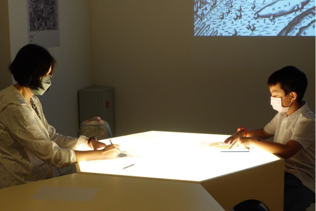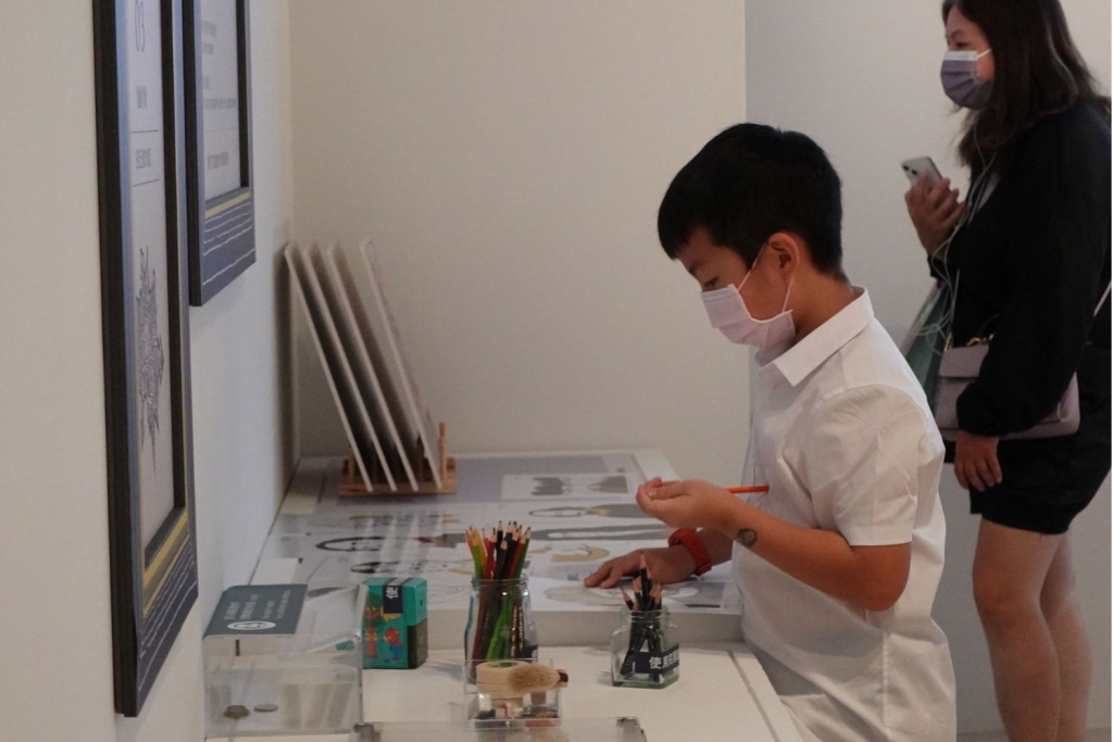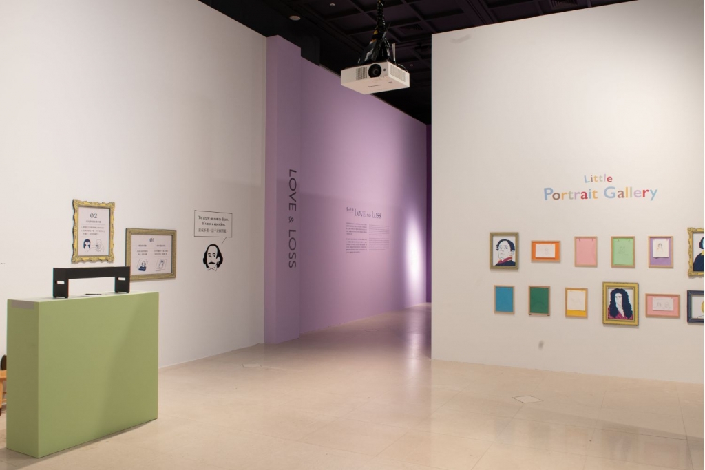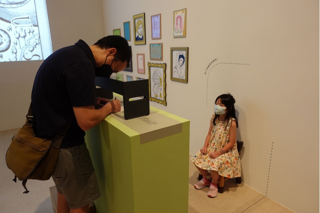 展區中間規劃的互動區,邀請民眾化身藝術家進行肖像創作,完成的作品可以展示在迷你肖像藝廊,形成展覽的另一道風景。