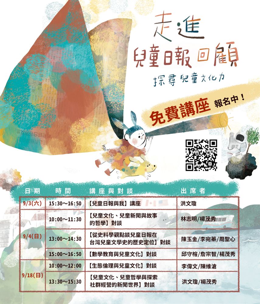 「走進兒童日報回顧,探尋兒童文化力」,由財團法人毛毛蟲兒童哲學基金會攜手國立臺灣圖書館合作辧理,光泉公司提供贊助。召喚回過去的小讀者們;對比現在的海角天涯事,不論是新舊讀者,或許從這次的回顧,展開不同的思索,讓您再一次煥新。現在,邀請大家來重讀舊報,或許能喚起您去追憶那個曾經走過的時代!