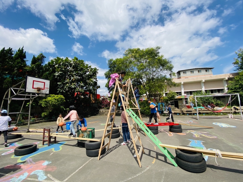 2020 年,建安國小直立式迷宮樂園遊戲場揭幕,這是透過納入學生參與式設計,打造出全臺國小校園內最高大分齡適能多功能空間,溜滑、攀爬、旋轉、穿越、平衡等,提供學生冒險挑戰,每節下課都能自發地活力玩耍。2021 年,在基隆市則是由八堵國小開始,舉辦改造遊戲場參與式工作坊,透過各種素材,讓校內孩子體驗和表達喜歡的遊戲行為;同在基隆市的尚仁國小,除了率領校內孩子自行規劃礫石鋪面的愛尚楓樂園向國教署爭取改造經費,並透過社規計畫提供輪胎木條組成的平衡木等鬆散素材,讓孩子在平日便能擁有不同自然遊戲可玩。