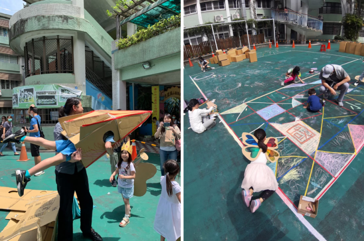 回到臺北市,銘傳國小趁著期中考前的 10月底搭著萬聖節氣氛,大玩全校版鬼抓人,擔任禮物外送員的學生穿著外送員裝備,被全校師生追。而光復國小,家長會響應兒童遊戲權,於母親節的校內園遊會活動,邀請還我特色公園行動聯盟 (特公盟)至學校舉辦自由遊戲活動。前段提到的楊智堅校長,更在新式遊戲場改建完成後,也是邀請特公盟到校辦理快閃遊戲活動。以上的國小校園案例,都顯示臺灣慣行教育的校園內,是可以往英國、歐盟甚至美加等國家學校所提倡的「遊戲友善學校 (Play-Friendly Schools)」的理念,更邁進一大步。