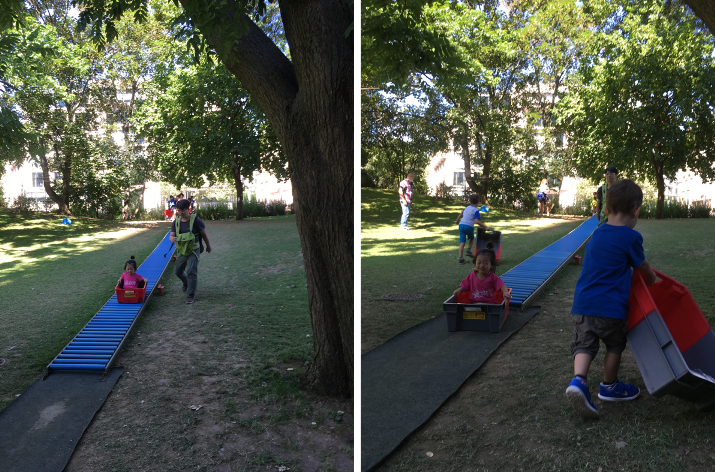 當然,一定要有足夠的空間讓孩子遊戲,不一定需要大量專業遊戲設備,可以是回收再利用的捐贈素材,像是紙箱、輪胎、木板、織品、厚紙板、木箱、家庭用品或辦公室用品或是細繩、膠帶 。