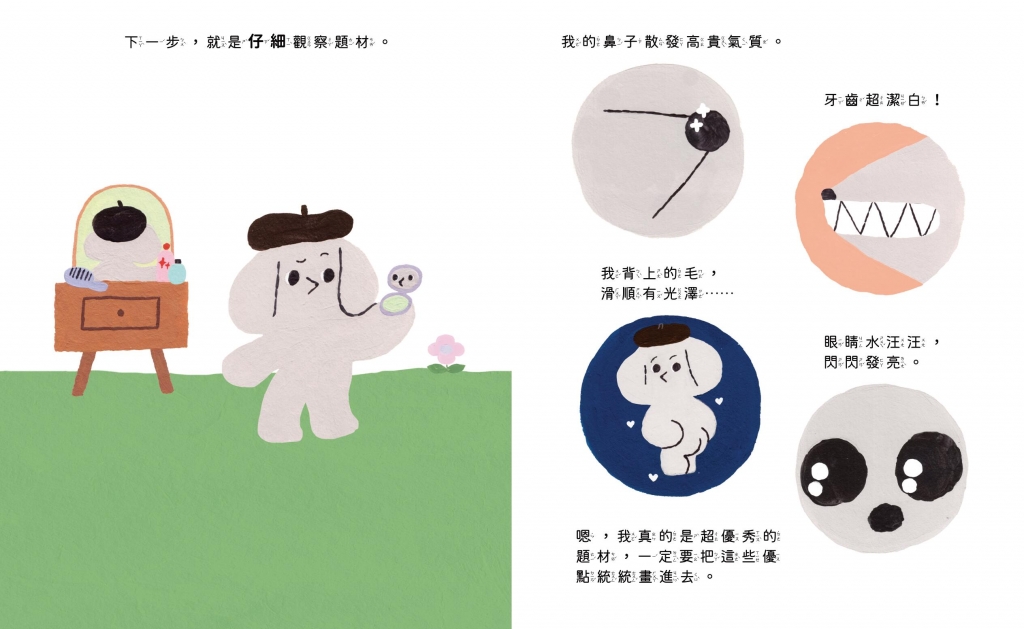 皮皮是狗狗藝術家,身為一隻創意十足的狗狗,今天他想要畫一幅自畫像。
