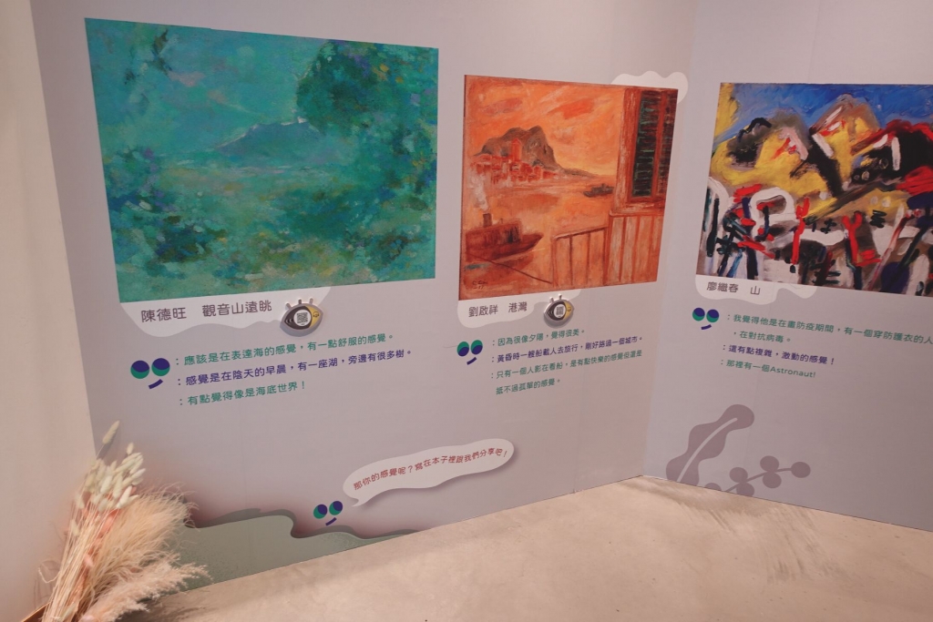 單純的用視覺去引導,除了看圖面上感受,也看小朋友理解程度,或思考與表達,也強調孩子「主體性」以及表達意見的權利。展覽不只是給孩子答案,而是可以去用各種感官去感受、去建構對畫作的感受,並建構對展覽的感知。