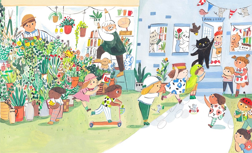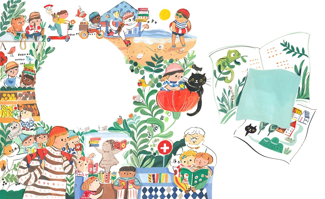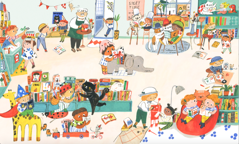 我在畫時也會讓很多小朋友不停出現,因為不可能每一頁都畫新的小朋友,所以有一些小朋友是固定班底,他們會常去小書店看書。