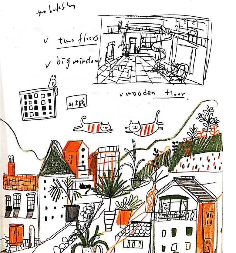 推薦喜歡畫畫的大家可以買個速寫本,在裡面畫的時候,好處是他不需要給任何人打分數,或是呈現給誰看,讓你可以很自在地畫畫,通常這會是最有想法的時候。