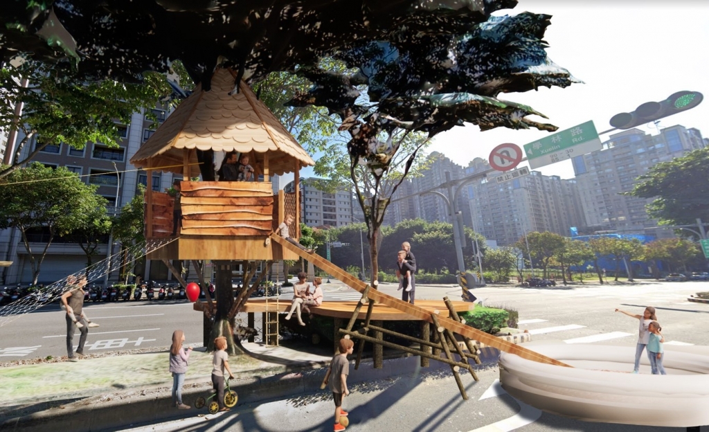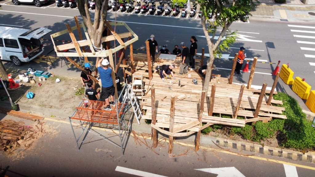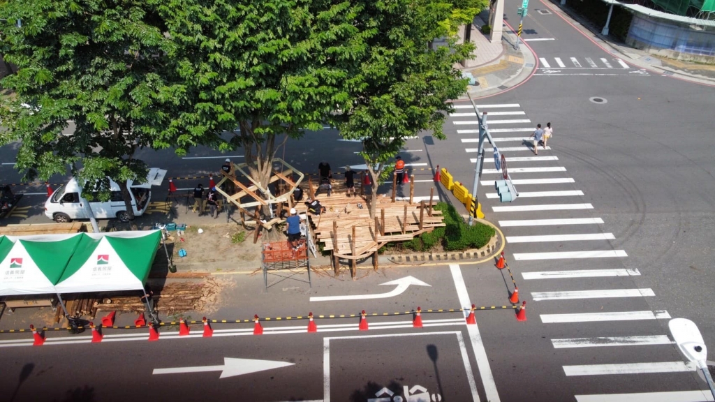 群眾募資最後二週的八月底九月初,新北市全民愛心推廣協會及幾位家長強力募款之下,終於達成 50 萬「樹屋街遊」目標,運用行政院農委會林務局新竹林管處提供的台灣國產木材,在台灣樹屋協會十幾位志工為期一週快閃施工之下,一座有休憩平台、爬繩梯架和溜滑梯的樹屋,出現在都市道路正中心,街遊不再是馬路平面活動,而更能在馬路路面的上空,創造出有高度、有變化、有挑戰且有視野的新玩法。
