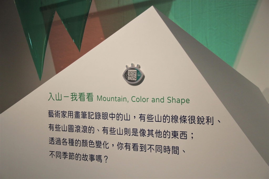 低調陪伴在以視覺為主的展覽裡,細節上來回不斷推敲呈現出預期效果。在參觀展覽同時,不要忘了邊掃QRCODE邊聽邊看展,或許可以發現更多沒留意到的小細節喔!提供大家第一展區⼊⼭−我看看 Mountain Color and Shape的語音導覽,聽聽看對於展覽有什麼想像? 其他的精彩內容請到現場找找QRCODE掃來聽吧!