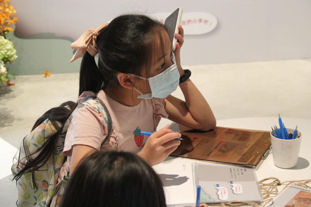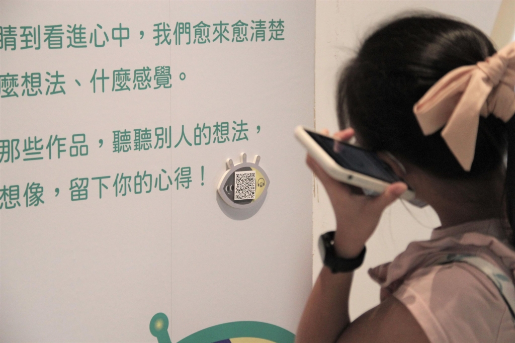 特別的是,教育展在語音導覽的語言種類也有細心考量。除了華語及英語之外,因為位處城市中心的國美館,也有許多祖孫觀眾前來,希望讓彼此熟悉語言做看展陪伴,所以也製作台語版本。