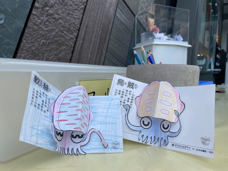 購買『蘭陽’s貝秀』宜蘭貝類特展門票,即可獲得一款「頭足類立體卡片」,於特展入口處與工作人員索取。共有5種不同軟體動物,隨機發放,不挑款式。限量發送,送完為止。