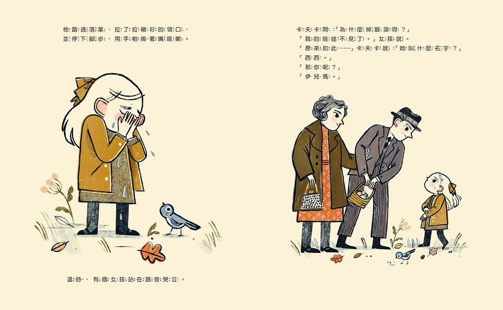 有一天,小說家卡夫卡(Franz Kafka)7在公園散步時碰到了一個小孩。那女孩弄丟了洋娃娃,她哭得好傷心。卡夫卡立刻跟她解釋發生了什麼事。