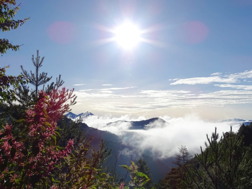 大雪山林道沿線虎杖花綻放,開車經過彷彿置身粉色迎賓大道,東勢處提醒遊客,切勿於林道旁停留影響交通,如欲欣賞虎杖花美景,可沿著大雪山林道開往49公里處的天池及神木步道,該區域紅色虎杖花開始盛開,與綠葉相互輝映相當漂亮,是最佳的拍照景點。此外,大雪山還有成群密布的原始檜木林、闊葉林相及夕陽雲海等景觀,隨著雲霧的漂移,露出深秋山林萬紫千紅的景色,歡迎民眾前來親自體驗。