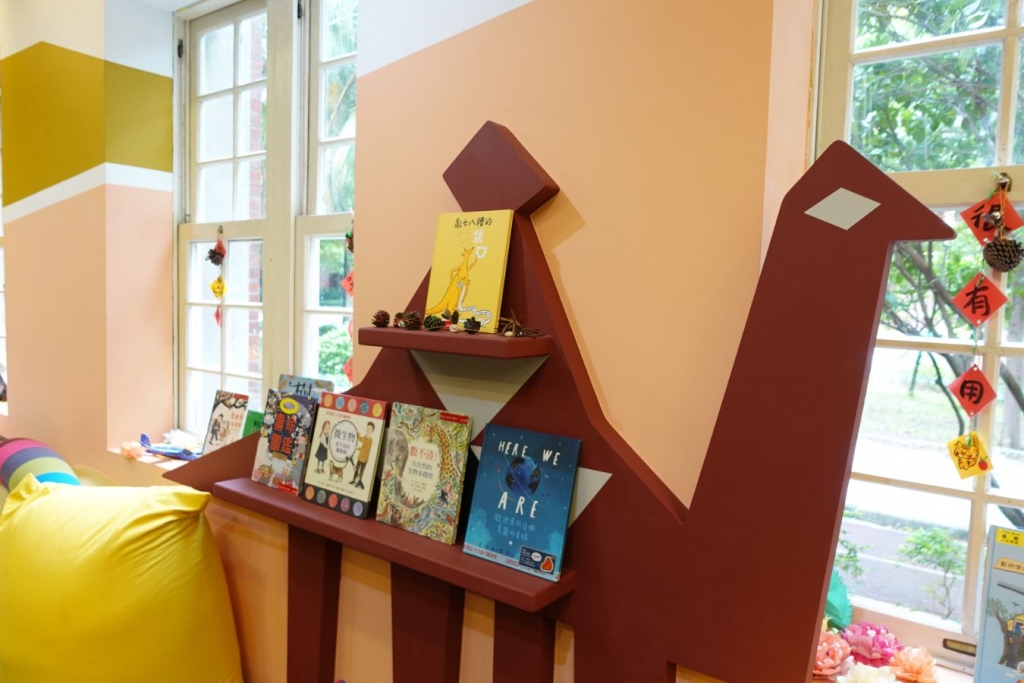 U12小玩藝空間大約每年會找一位藝術家來做裝置,依照空間需求跟使用對象去設計裝置。基本需求會需要設計書架放書,如果藝術家可以做立體作品,也會希望設計遊具讓小朋友可以在空間玩、或滾或坐。希望透過空間情境佈置,讓小朋友可以沉浸喜歡的世界。