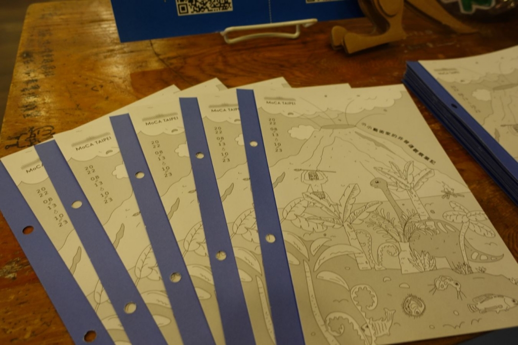 展覽延伸的兒童學習單會跟語音導覽,不一定完全照展覽主題進行,通常會另訂故事主題,再做內容配套規劃。兒童學習單是摺頁形式,大約選六件作品串成故事。呈現內容多元,會讓小朋友去觀察、做筆記,也可能用畫的、動手做的,穿插根據作品設計的紙上遊戲,不同創作形式,讓小朋友變身小小藝術家。
