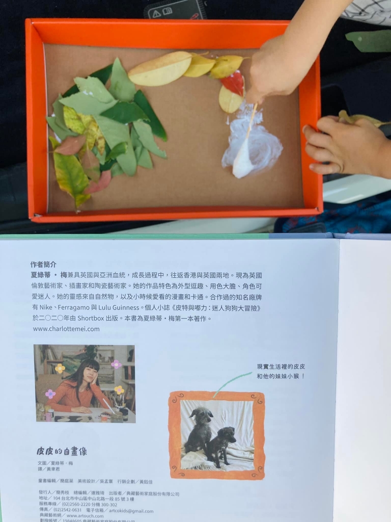 最末頁有書本裡出現的幾位藝術家的綜合介紹,可以提供家長在介紹給孩子前簡單的認識喔! 還有,記得介紹繪本最末頁皮皮本尊的照片給幼兒看, 當繪本人物是生活中活靈活現的動物時,他們也覺得特別有趣呢!還有,認識作者也是我平日會跟孩子們分享的ㄧ環。