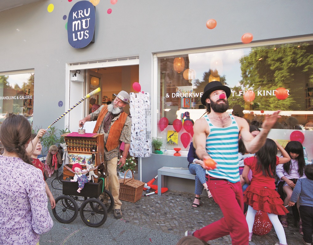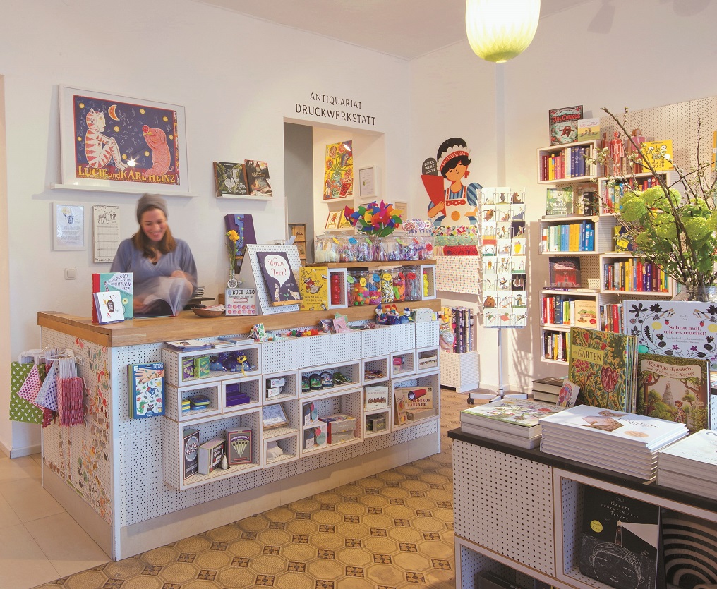 二○一四年開始,安娜.墨林豪斯(Anna Morlinghaus) 不僅經營童書店克魯姆魯斯(Krumulus),同時也銷售二手童書,打造畫廊、藝術印章印刷工作室和閱覽室。身兼四個男孩的母親和書店經營者,她解釋道: