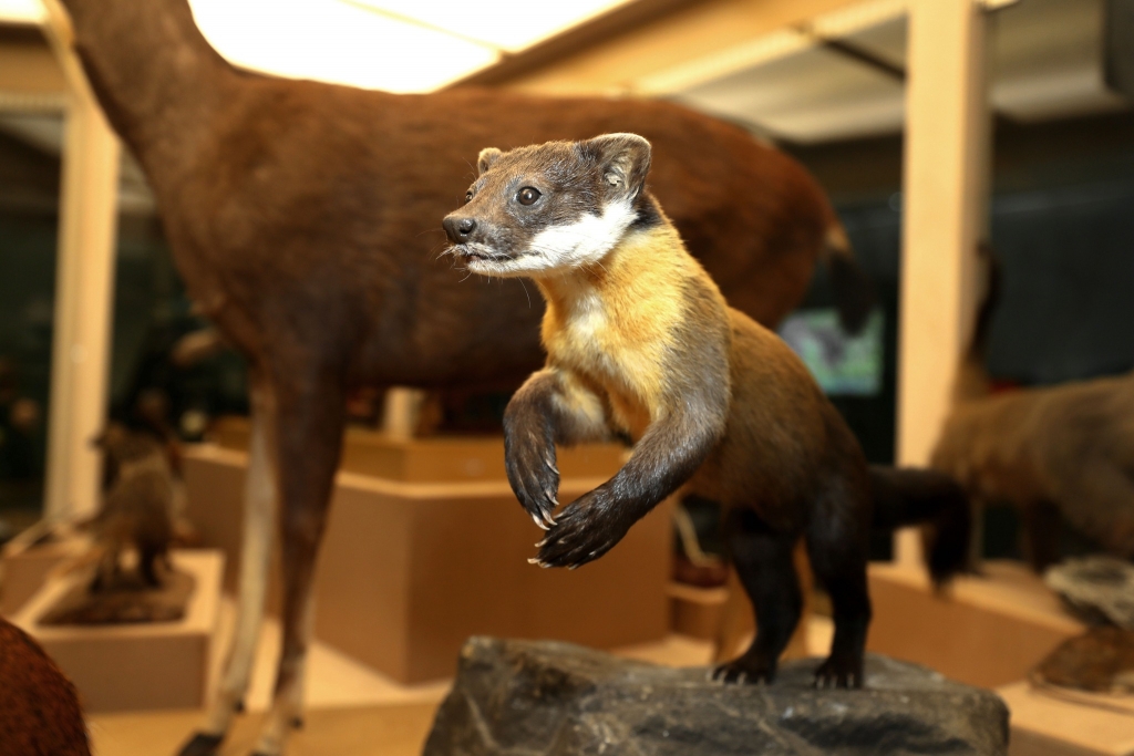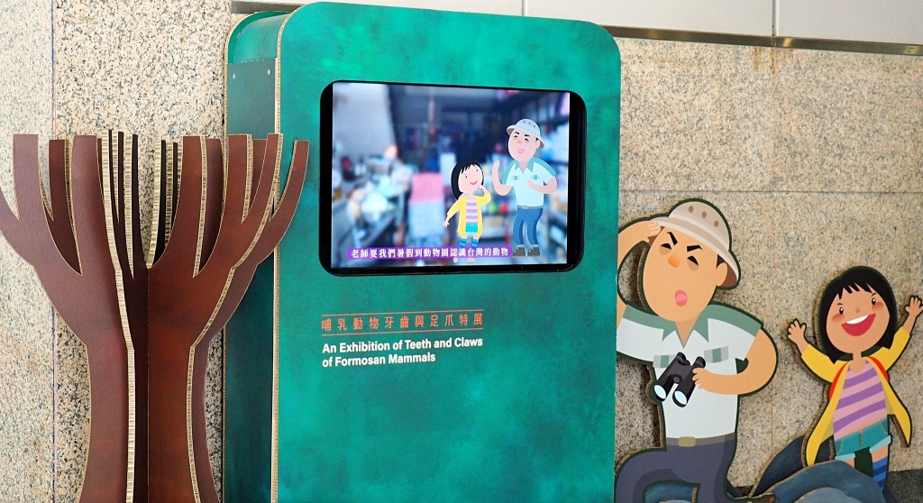 國立自然科學博物館《張牙舞爪—哺乳類動物牙齒與足爪特展》,透過一對布農族祖孫對話開啟一趟大自然巡禮。現場展出超過25種臺灣哺乳類動物標本,其中一件珍貴稀有保育類動物「黃喉貂」生動靈活的立姿標本,可清楚看到牠足爪特徵;還有觀眾絕對料想不到,「白面鼯鼠」的糞便是青草味的!