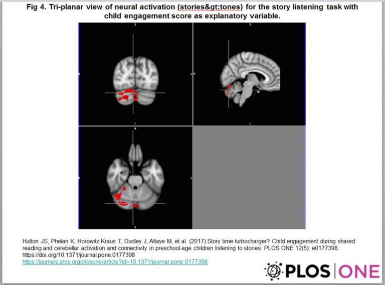 Hutton JS, Horowitz-Kraus T, Mendelsohn AL, DeWitt T, Holland SK.Home Reading Environment and Brain Activation in Preschool Children Listening to Stories. 2015. PEDIATRICS, 136:467
