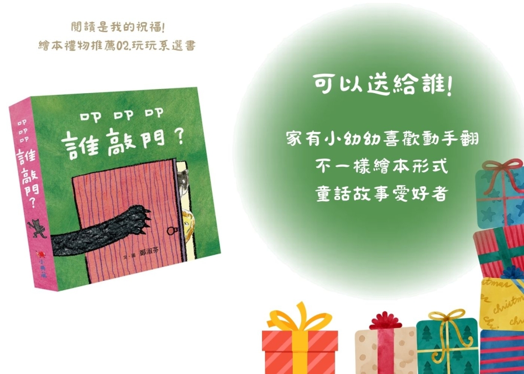 翻翻捲捲書除了說故事,更適合親子問答互動!由爸爸媽媽來敲門,小朋友來回答,或是互換角色來演出。強力推薦讀者加上需要聲音表演,會更有趣好玩唷!故事結局到最後才揭曉,保證意想不到,讓想像力大爆發!