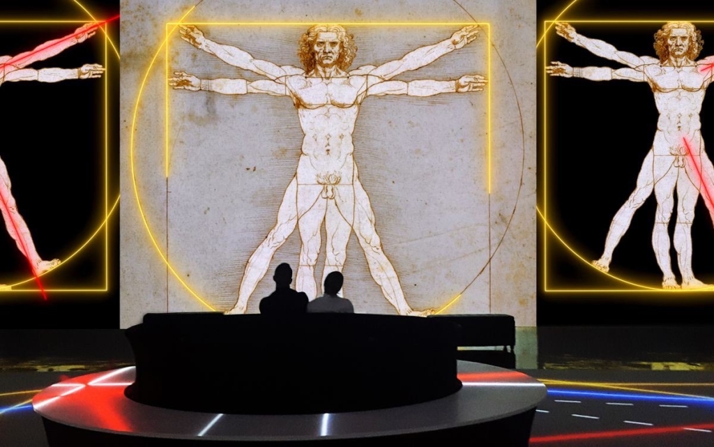 以「傳奇性人物 × 虛實與藝術整合 × 沈浸互動 體驗」為主軸,策劃 6 大區域,搭配全台首創 5G+4K高規格投影的沉浸智慧場域【双融域 AMBI SPACE ONE】共同協辦,結合360度五面環景的動態投影,重現14世紀文藝復興時期的經典作品,帶領觀眾一步一步走進天才達文西的腦內世界。