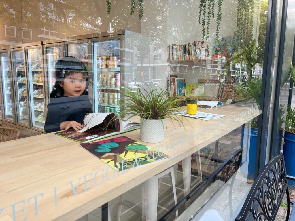 有線上書店也有實體空間的小冊選書,在Veggie Garden超市的成列書籍約有200本。店內藏書不多,但隨時跟著季節與節慶更新。對住在海外的小讀者來說,他們能對爸爸媽媽、阿公阿嬤的原生文化與土地感到更加好奇、熟悉或喜歡嗎?小冊選書之所以存在,正希望為這群在海外生活、長大的小讀者,提供更多中文學習,與來自台灣、亞洲的文化與美感養分。