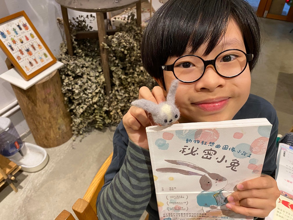 上了小學後,除了繪本,我也讀了各種的文字書,但我還是喜歡搭配圖畫的閱讀,三年級的時候我讀到了張友漁老師和貓魚老師的作品《祕密小兔》,這是一本比繪本的文字量多的圖文書,我非常喜歡這樣像漫畫也像小說的形式,貓魚老師筆下的灰白色胖胖的小兔很像我的貓妹妹徽徽,他的背包裡收藏了好朋友小美的祕密,小美只說給他聽的祕密越來越多,他的背包就越來越重,為朋友保守祕密的任務實在太辛苦了,還必須要應付各種對祕密好奇的試探和追問,後來小兔在外婆的幫助下終於找到解決的方法,小美說出那些不敢說的祕密,小兔的背包裡就不再需要放祕密了,我也跟著鬆了一大口氣,可以釋放祕密不再被壓得喘不過氣,真是太好了!我沒辦法做祕密小兔,但我希望可以讓自己和朋友減少煩惱,不要放太多祕密在心上,更自由更快樂!