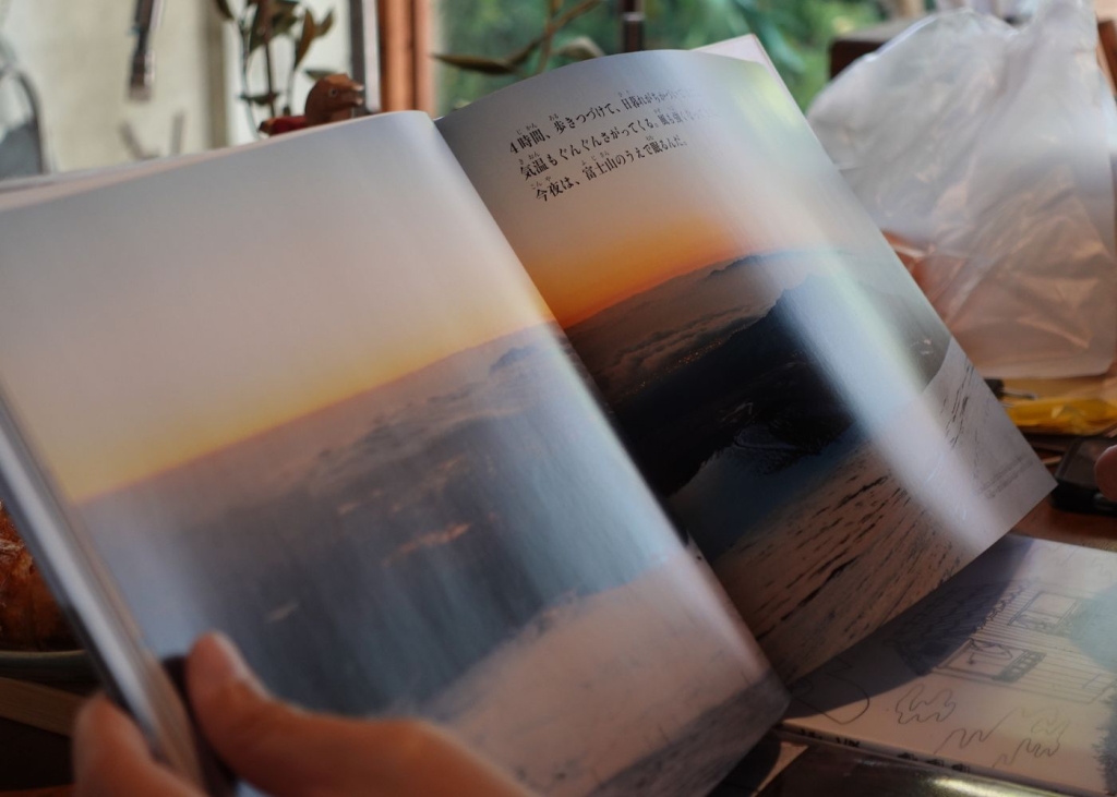 第三本《爬富士山》也是寫真繪本。作者石川直樹是日本探險及攝影家,常挑戰很艱難的高山。書中紀錄他冬天在富士山做獨攀訓練的紀錄。畢竟是用自己出發點去選書,Joying選書考量還有觀察「作者怎麼去企畫內容做出不同的點」。不只看書,觀察內容趨勢也十分有趣,畢竟一本書的出版,背後有多重考量與群眾設想。《爬富士山》跟《揹著家上路》都是紀錄型內容為底,也有類似科普繪本。對Joying來說,《爬富士山》的文字如詩般優美,與整體畫面的美感搭配十分完整,是本吸引人駐足翻閱下去的書。