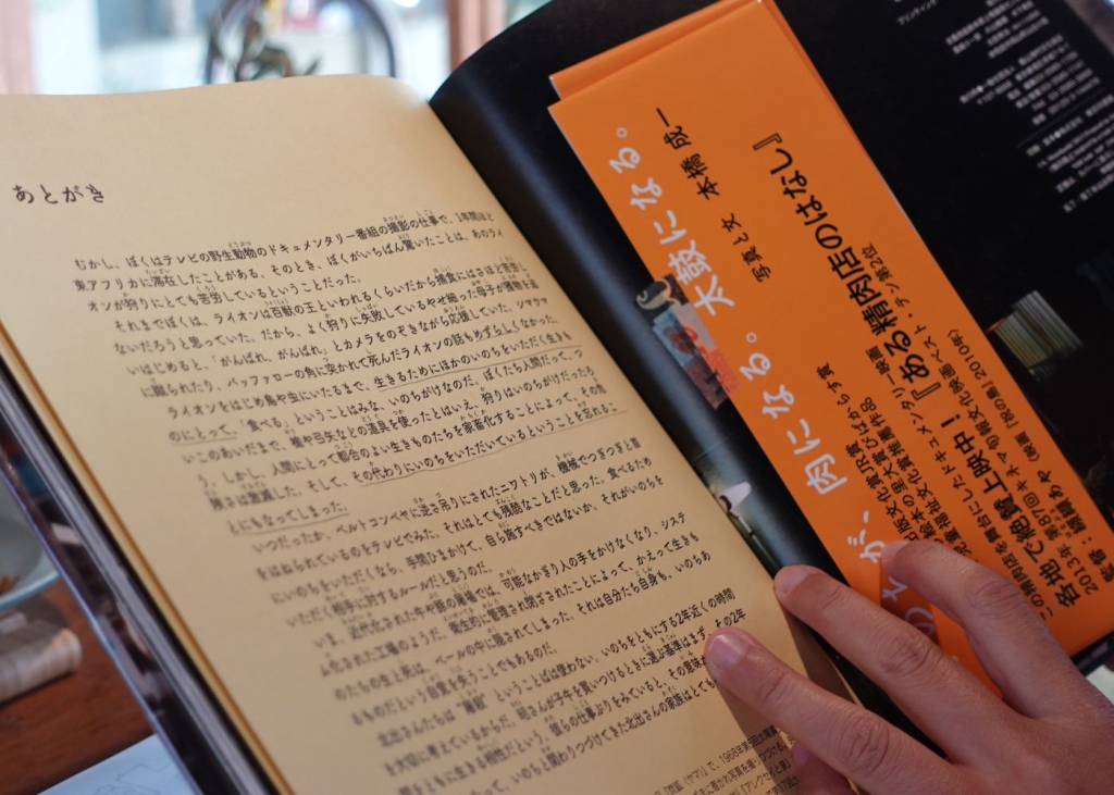 跟書的第一次相遇是在京都惠文社一乘寺店,當下覺得很有趣,但不太繪本形式的主題猶豫是否下手。直到第二次造訪再次遇到才定心買下。從封面看覺得是攝影圖文書的《うちは精肉店》是寫真繪本,內容是紀錄屠宰場最後一次屠宰,用攝影照片記錄動物在進入肉品市場之前屠宰的步驟。書裡紀錄早期的屠宰場,自己養牛之外還順便經營肉店的一條龍作業的店家。