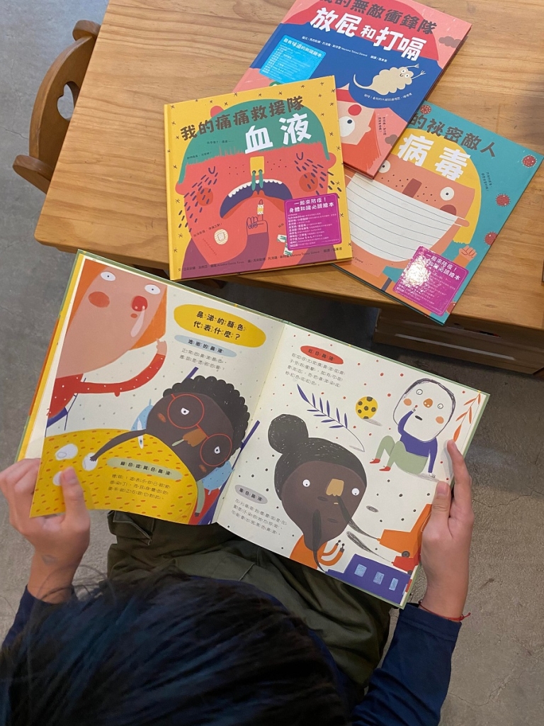 每當季節變換,我的鼻子過敏症狀就會發作,擤著鼻涕讀到《我的超級英雄:鼻涕》才發現,原來這麼讓人困擾的鼻涕其實是身體的超級英雄,它會阻止病毒和細菌進入人體,雖然我們總認為它又黏又髒,作者馬莉歐娜・托洛薩・斯特雷在這本書裡提到許多有關鼻涕的小知識,都非常的有趣,比如觀察鼻涕的顏色可能代表身體出現了什麼狀況,除了人類以外,其他的動物也會擤鼻涕,狗狗用舌頭、海豚用噴氣、大猩猩用手指頭(而且牠還會吃掉鼻涕),我好喜歡用這麼幽默的方式讀這些有趣的科學常識,這個作者後來也陸續出版了各種關於身體的自然科學繪本,有血液、病毒、放屁和打嗝,接下來還即將出版《我的健康守門員:牙齒》,這些和我們息息相關的身體健康常識,藉由有趣的繪本來讀懂它們,是不是更輕鬆愉快呢?