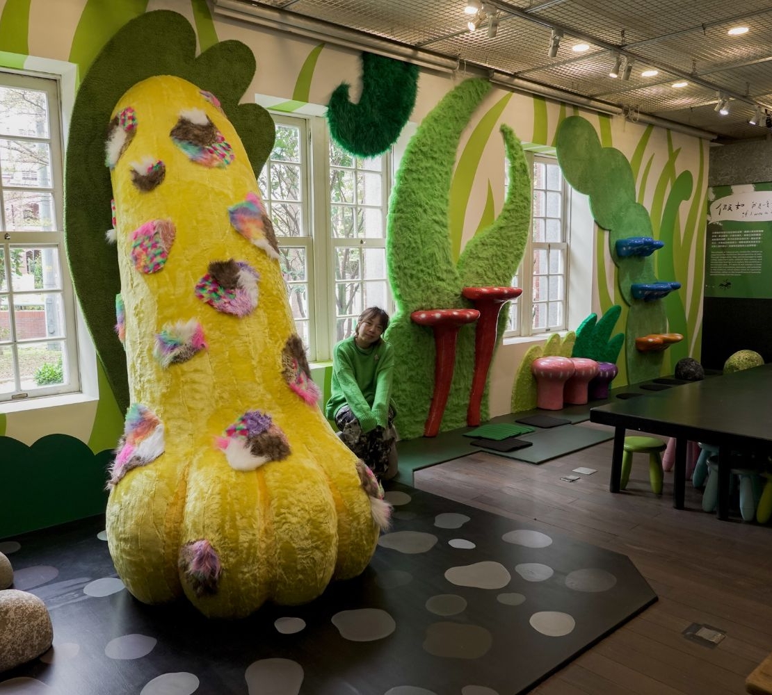 來親身體驗一下,鮮豔欲滴的蘑菇比人還高的時候(圖/台北當代藝術館)