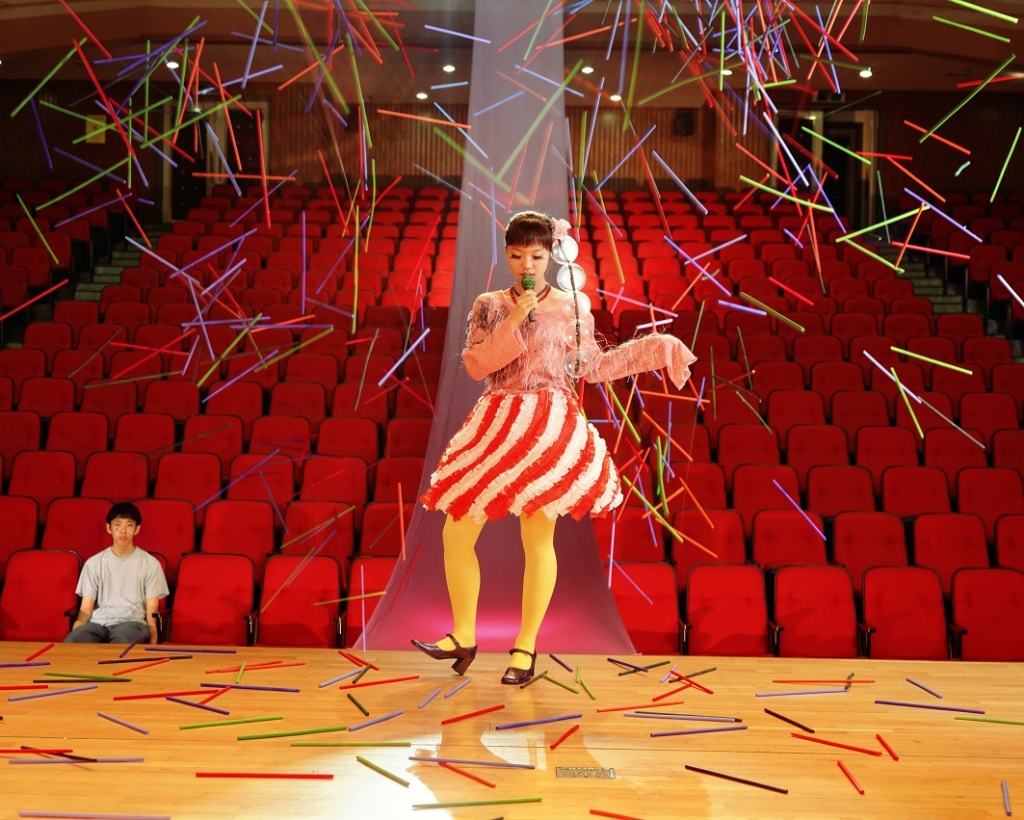 鄭然斗關注現實與夢想的殊異,攝影系列作品《奇幻樂園》試圖重現兒童腦海中的情境。藝術家安排繪畫題目邀請孩童進行發想,蒐集他們的成果作為編導式攝影稿本,由設計師按圖製作服飾、高中生扮演角色與擺拍,還原小朋友一幅幅隨興捻來的奇想場景,並將兩者同時呈現,邀請觀眾徘徊畫作和實景影像間,觀察、辯證數位生活下的虛實面相。