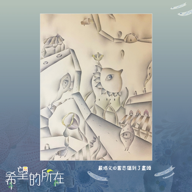 一起前行需要依賴彼此相互依靠的力量,來看培文本次展出的三幅作品《當悲傷到了盡頭》,作品將引領你帶著各種期待,走向通往家的方向。