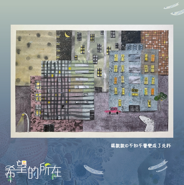 《不知不覺變成了北杯》從作品名稱便能感受到時光的流逝無力,凱凱畫下「只要秉持信念,有扇窗會為你而敞開。」
