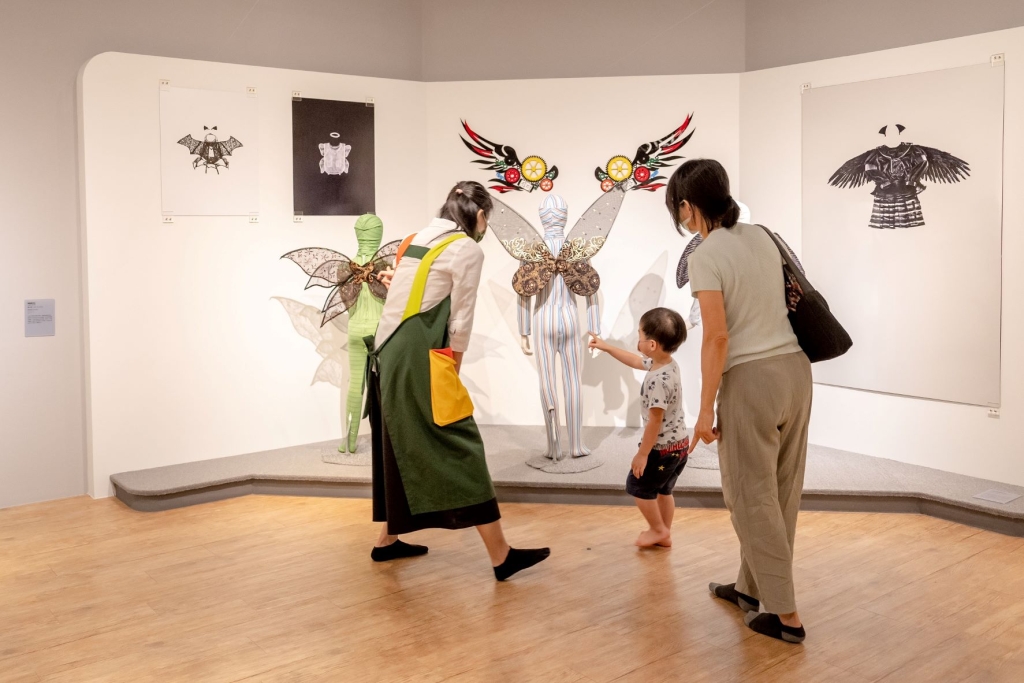 藝術家周尹庠是實踐大學時尚設計系的老師,特別邀請以高美館園區內的動物作為發想,藝術家使用不同飛行動物的翅膀來轉化成服裝,如:蝙蝠、蝴蝶、蜻蜓等。嬋娟表示,原本就留意到藝術家有以自己成長階段為發想,創作出翅膀意象作品,像是天使與惡魔、不同年齡層的制服,埋藏了成長過程中被社會化的過程象徵。