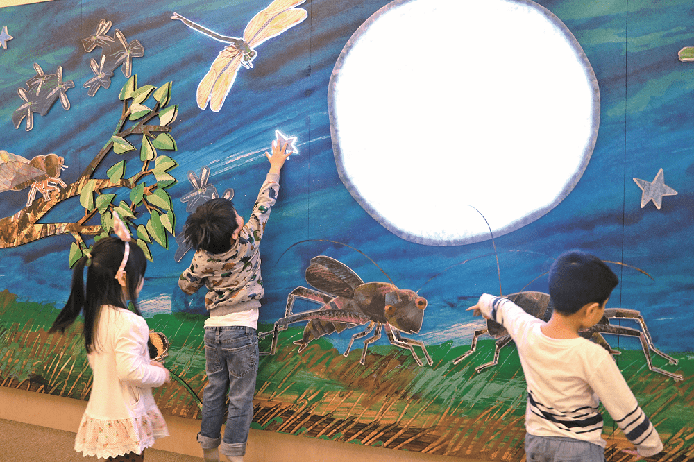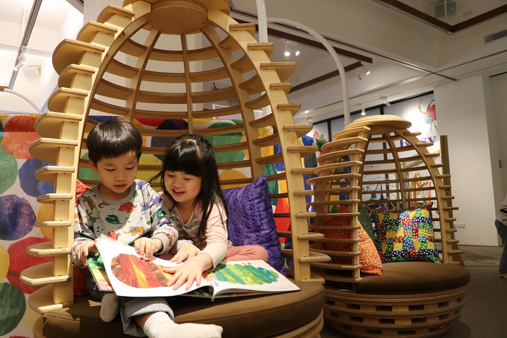 策展負責人信誼基金會營運長廖瑞文表示,這項展覽是以已故國際繪本大師艾瑞.卡爾5本「Very」繪本,包括《好安靜的蟋蟀》、《好寂寞的螢火蟲》、《好笨拙的甲蟲》、《好忙的蜘蛛》,以及有圖畫書聖經之稱、全球超過五千萬鐵粉的《好餓的毛毛蟲》,依循這五本圖畫書的中心主軸「愛、歸屬感、毅力、認真工作和希望」,透過書中角色延伸,結合科技、美術和工藝,設計出以不同感官交織探索的五大主題遊戲區、畫展和手作區。親子在遊戲體驗後,可以到畫展區,欣賞5本經典圖畫書的24幅精彩畫作,並仿效卡爾爺爺創作方法,動手做拼貼,帶著得意的作品回家珍藏。