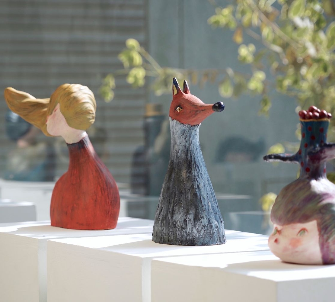 從童趣風格的繪圖作品,到描繪細膩的陶瓷雕塑創作,吉娜兒不斷挑戰突破平面與立體間的框架,於作品間自然流露創作當下的真實心境。她結合自身長年的繪畫經歷、充滿情緒張力的色彩與筆觸,賦予陶瓷作品多樣表情,並嘗試於陶塑表面實現畫布般質感,在不同線條、筆觸,以及逐層的色彩堆疊中,協調顏料的濃淡變化、光影的虛實,呈現創作者自身而言的生命本質。