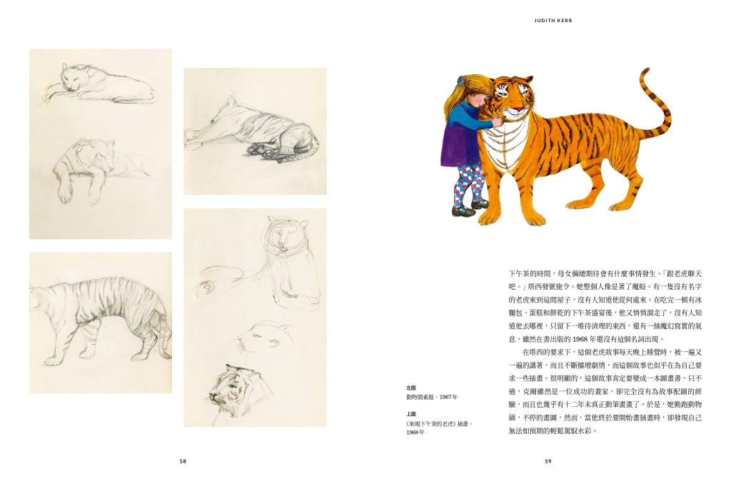 本書細看朱迪絲.克爾的一生,也一探經典作品《來喝下午茶的老虎》創作始末。從故事的雛形到成形、創作新手毅然將作品交由出版社到實際出版,所經歷的轉折與合作,為她開啟另一段精彩的人生。