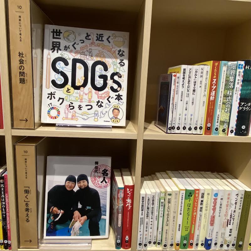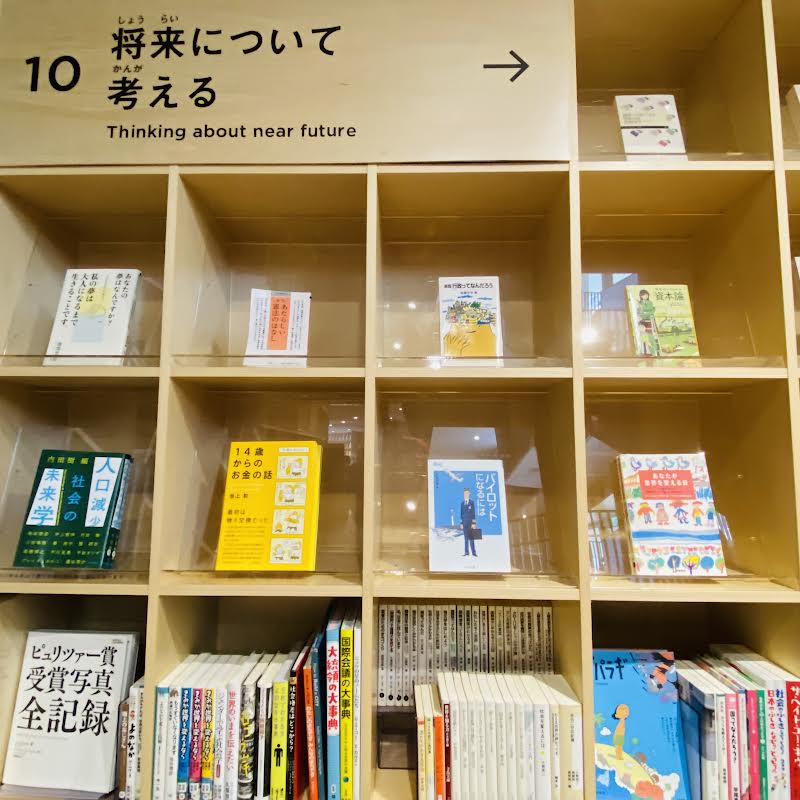 關於「未來」的討論,就有兩個話題書區——「未來是什麼模樣?」(What is the future like?)「思考不久的未來」(Thinking about the near future)兩個書區。從神話與民間故事談起,在開始說「未來」以前,先認識「過去」。「今天」是來自過去人類對「未來」的想像,那「明天」呢?「思考不久的未來」則是提供當下日本與世界正面臨的問題,提供解決的思考。公害、災難、過去的戰爭甚至是今日日本國內自衛隊與正常化國家的辯論,然後從科學上繼續討論對世代和平的祈求。