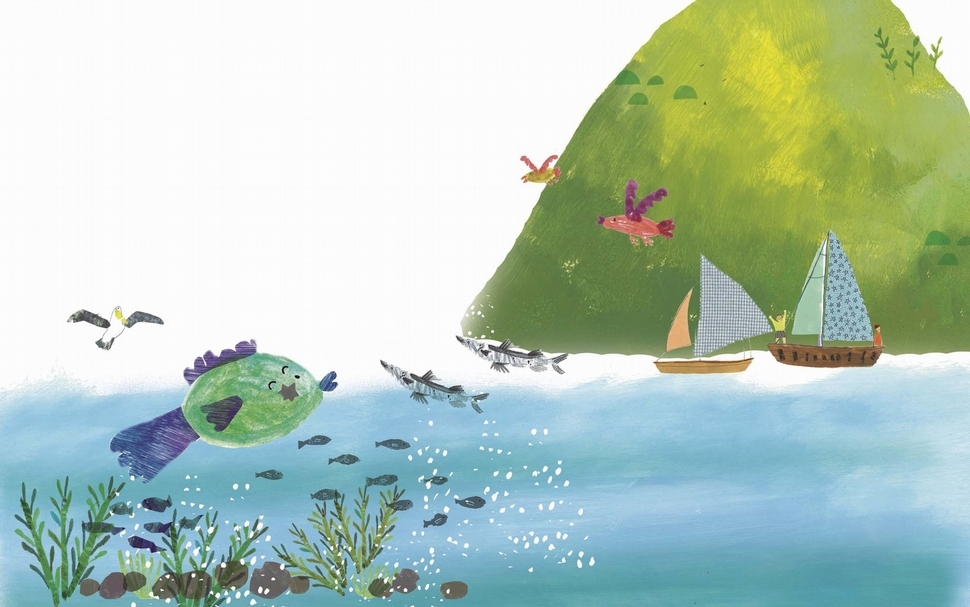 他們一路旅行,順著小河游進了大河,又從大河游進了小河。就在大河小河不斷的交錯中,終於,他們抵達河的盡頭,看見了大海。