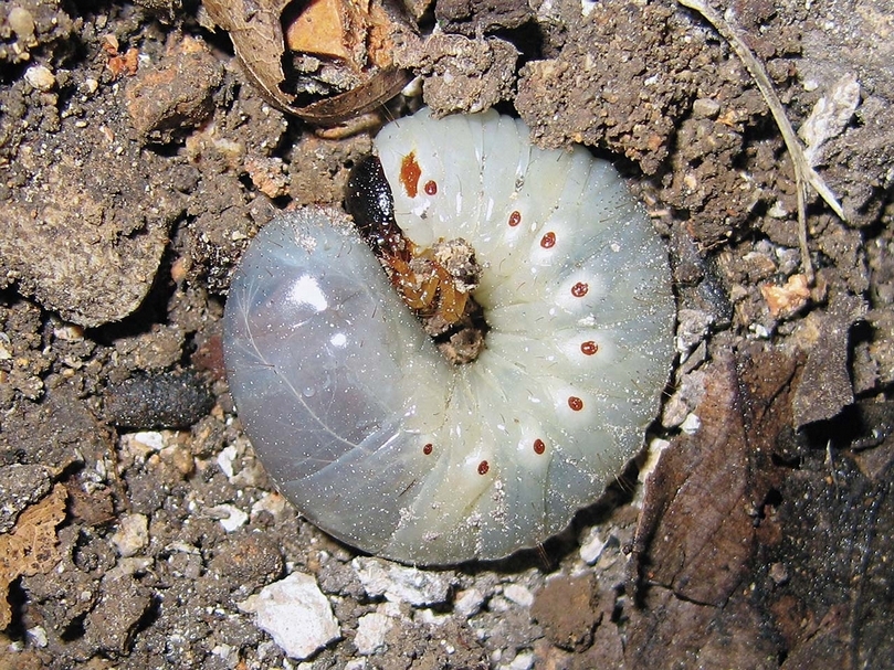 土裡面躲著肥肥胖胖的「雞母蟲」,牠會把蔬果的根部當成食物來吃。 ©Greg Schechter到農場去玩