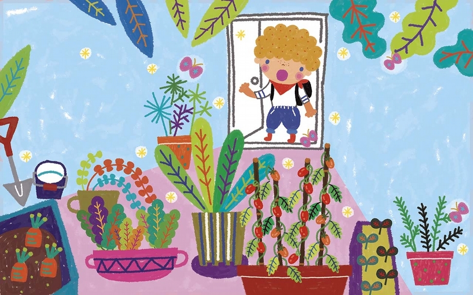 進了公寓,站在家門口,阿宏沒有勇氣開門,只好沿著階梯往上走,不知不覺來到公寓頂樓。原以為頂樓什麼也沒有,只有灰撲撲的水泥牆,沒想到映入眼簾的會是一片綠。