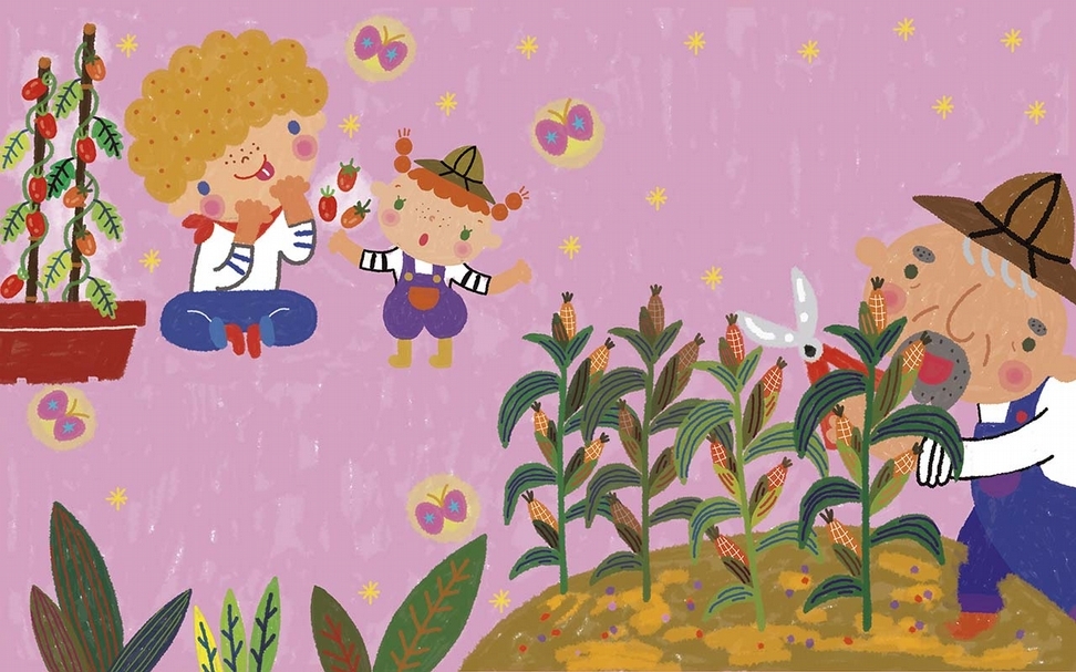 「很甜喔,紅的才能吃,綠的不能吃。」突然傳來的聲音,把阿宏嚇了一跳,是一個小女孩,後面跟著一位老先生。「阿公,他可以吃嗎?」小女孩問。「當然可以!你是住三樓的吧,我見過你。多多,摘幾顆給哥哥吃。」說完,老先生轉身消失在一排高大的玉米叢後。